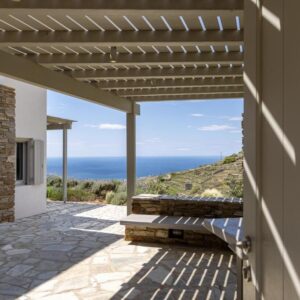 The terrace is the true highlight of Villa Aphrodite. With uninterrupted views over the sea and the Cycladic landscape, it offers moments of tranquility from early morning to sunset. A private outdoor space designed for unwinding, reading, or simply enjoying the stillness.