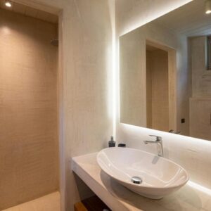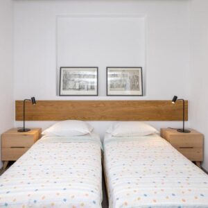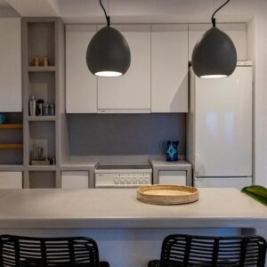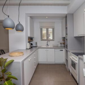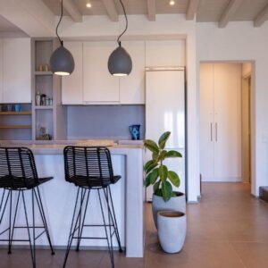 The villa features two separate bedrooms, well-appointed bathrooms, and a fully equipped kitchen, ideal for an independent and comfortable stay. Interior spaces are functional and elegant, offering everything needed for a relaxed holiday experience.