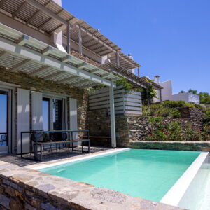 • Private outdoor swimming pool with uninterrupted Aegean views