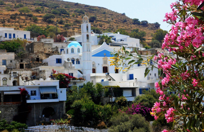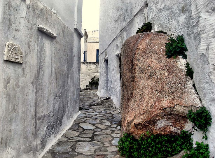 Marble-paved lanes, traditional houses, and hidden courtyards create an inviting setting for leisurely walks. From the lower terraces, the views across the sea and towards nearby islands are particularly striking, especially in the late afternoon light.